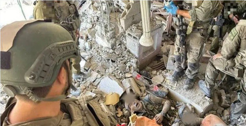 ويظهر في الصورة التي نشرتها وسائل الإعلام الإسرائيلية عددا من الجنود الإسرائيليين يحيطون بجثة يحيى السنوار داخل مبنى في تل السطان في رفح.