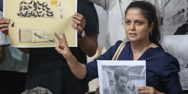 وظهرت بمقر نيابة أمن الدولة العليا، اليوم، زوجة أشرف عمر، والصحفي أحمد سراج، وذلك بعد اعتقالهما، على خلفية حوار فيديو، نشر على منصة “ذات مصر”، أجراه الصحافي مع زوجة الرسام المعتقل.