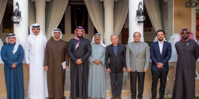 وأصدرت وكالة الأنباء السعودية (واس)، الأحد بيانًا، عقب انتهاء القمة غير الرسمية، أعلنت فيه عن ترحيب قادة دول مجلس التعاون الخليجي ومصر والأردن بعقد القمة العربية الطارئة في 4 مارس المقبل بالقاهرة، مكتفية بالإشارة إلى أنه “جرى التشاور وتبادل وجهات النظر حيال مختلف القضايا الإقليمية والدولية، خاصة الجهود المشتركة الداعمة للقضية الفلسطينية وتطورات الأوضاع في قطاع غزة”.