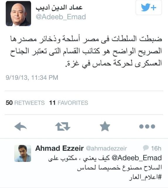 إلا أن أديب ومن سانده سواء كانت لجانا أو متطوعي الغباء يجدون من يرد عليهم فقال ياسين المصري @YAlmsry34864: “أنا أقترح على عماد أديب أن ينحي الأنظمة الذليلة التي يتحدث باسمها ومتشرب لذلها أن يتركوا موضوع الإعمار للشعوب الإسلامية والشعوب الحرة وسينجزون الإعمار دون الحاجة لأمثاله، نزع سلاح المقاومة رغبة الصهاينة بتوقيع الأنظمة المتصهينة”.