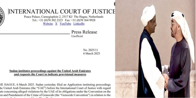 رفع السودان دعوى ضد دويلة الإمارات أمام محكمة العدل الدولية على خلفية التواطؤ في جرائم الإبادة الجماعية بحق الشعب السوداني.