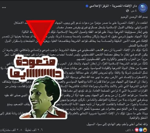 في بيان رسمي قالت دار الإفتاء المصرية “الجهاد في الإسلام مفهوم شرعي منضبط، له شروط محددة، ولا يجوز لأي جماعة أو جهة غير مخولة أن تصدر فتاوى أو دعوات بشأنه بمعزل عن المؤسسات الدينية والدول الرسمية، مؤكدة أن مثل هذا التحريض قد يؤدي إلى زعزعة الأمن والاستقرار، وإلى نتائج كارثية تمس الشعوب الإسلامية ذاتها.”.