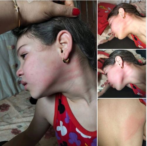 دي بنتي بتاخد درس عند مس معندهاش رحمه ولا دين ضربت بنتي بالشكل المتخلف ده .. لمجرد أن البنت كانت خايفه منها وقاعده تعيط ف الحصه ف قامت ضربتها بالشكل ده .. وف الاخر قالتلها يلا غوري فداهيه من هنا .. يعني انا أأمنها علي بنتي وادفع ١٠٠٠ جنيه علشان تعلم بنتي وتتقي ربنا فيها في تتصرف مع بنتي بالشكل ده وتبهدلها كده دا يرضي مين .. ".