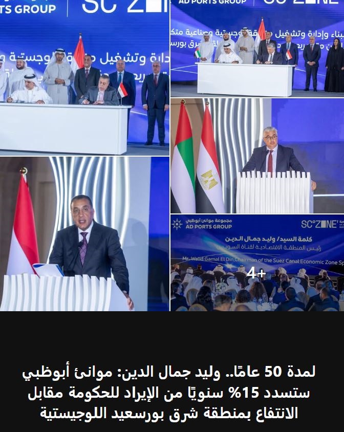 قال رئيس هيئة المنطقة الاقتصادية لقناة السويس بمداخلة متلفزة: إن “العقد الذي وقعته الهيئة مع موانئ أبوظبي للانتفاع بالمنطقة اللوجستية شرق بورسعيد مدته 50 عامًا تحصل مصر فقط على 15% من إيراداته، وهو ما أظهر على ما يبدو حقيقة الاستحواذات الإماراتية التي أكلت مصر حتى الثمالة، فلم تعد تكتفي بشراطة ال49% ومناصفة الايرادات، بل باتت الاستحواذات عملية بيع مدار لصالح دولة الاحتلال “بالنيابة” وعاصمتها أبوظبي فبات أشبه بامتيازات الإنجليز الذين احتلوا مصر في 1882 وغادروها في 1956″.