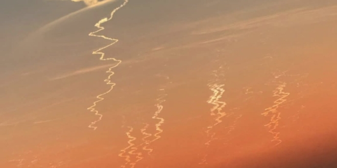 وأضاف Mohamed Salem "عوادم وآثار تكثف الهواء نتيجة اعتراض صواريخ ايران الخطوط تحت المنصات الدفاعية زي ارو وحيتس وفوق مكان الاعتراض والاثر الكيميائي للانفجار … زي فكرة اثر الطيارات التجارية العادية اللي بنشوفه كل يوم وبيتحرك مع الرياح او لو ارتفع كفاية دوران الارض هيخليه يظهر وكأنه فوقنا احنا لكن في الواقع دا حصل من مدة شرقا".