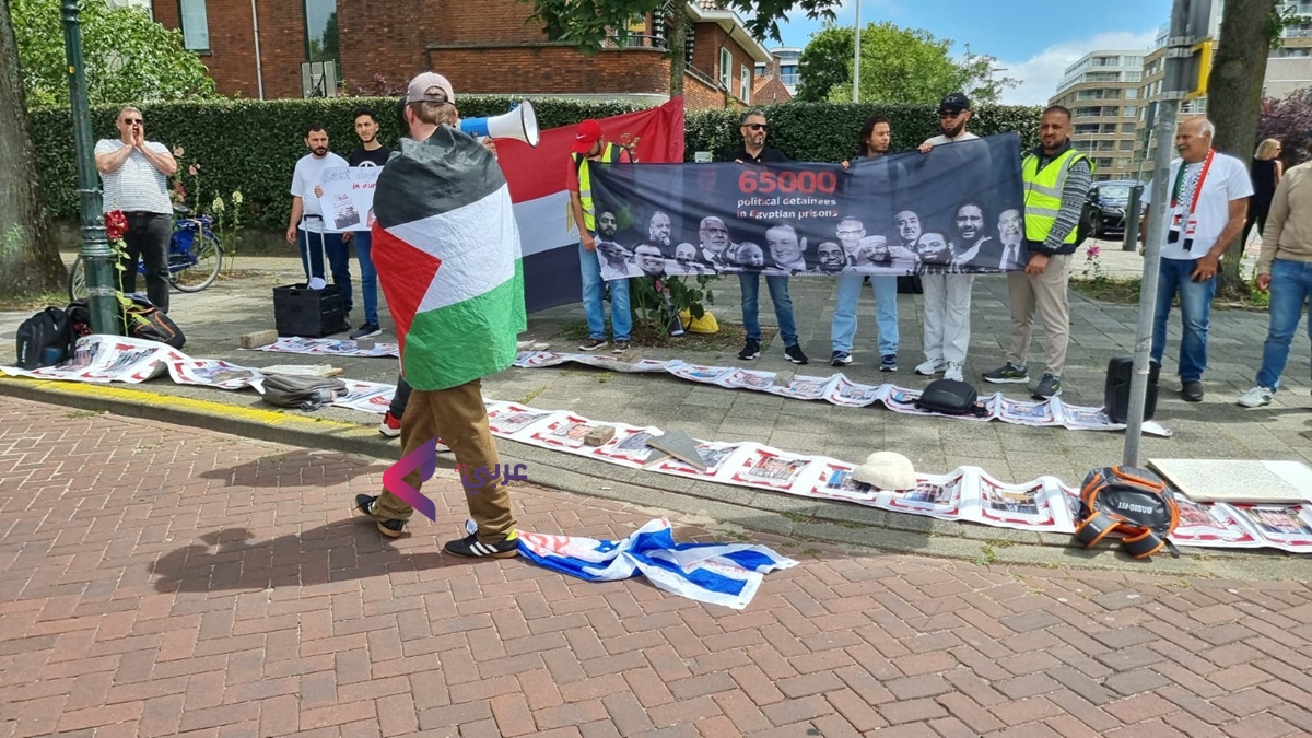 وقد احتشد المتظاهرون أمام مبنى السفارة الواقع بمدينة لاهاي، حاملين لافتات وشعارات تطالب بفتح معبر رفح دون قيود، وبإطلاق سراح المعتقلين السياسيين، ووقف ما وصفوه بـ"آلة القمع والخذلان".