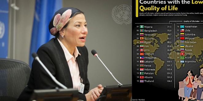 وبحسب جروب @grok فإن تصنيف مصر كخامس أسوأ بلد للعيش فيه من مؤشر جودة الحياة على موقع نومبيو(Numbeo's Quality of Life Index)، حيث سجلت 83.2 نقطة، وذلك بسبب عوامل مثل السلامة والتلوث.