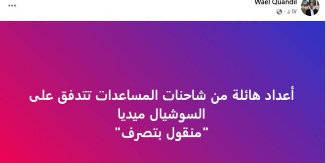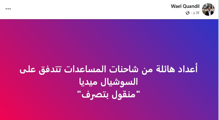 وكشف عن هزلية المساعدات التي طنطنت لها لجان السيسي أكثر مما فعلت تل أبيب، مصريون كتاب ودبلوماسيون، ومنهم السفير السابق محمد مرسي وعبر Amb Mohamed Morsy قال: " أيها اللجان أعطيتمونا صباحاً إحساساً زائفاً بالفرحة عندما خدعتمونا بتدفق المساعدات لغزه، واكتشفنا الحقيقة قبل حلول المساء، لا سامحكم الله. ".