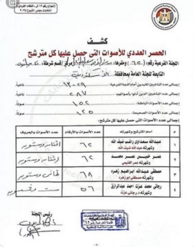 منصة@AlshoubBreaking لفتت إلى ما كشفت عنه محاضر الفرز الرسمية لـ "انتخابات مجلس الشيوخ" عن نسبة مشاركة صادمة لم تتجاوز 1%، ما يفضح رواية النظام حول "الإقبال الشعبي".
