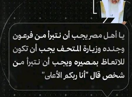 الأكاديمي رضوان جاب الله علق "عبر هاشتاج #لا_يحق_لمصطفى_أن_يذم_فرعون قائلا: "اعتقال الشيخ مصطفى العدوي يضيع كل الاحتفالات والمهرجانات ويبين أنها دعائية ، الرجل قال إنه يتبرأ من فرعون وعمله وزيارة المتحف تكون للعبرة والعظة!".