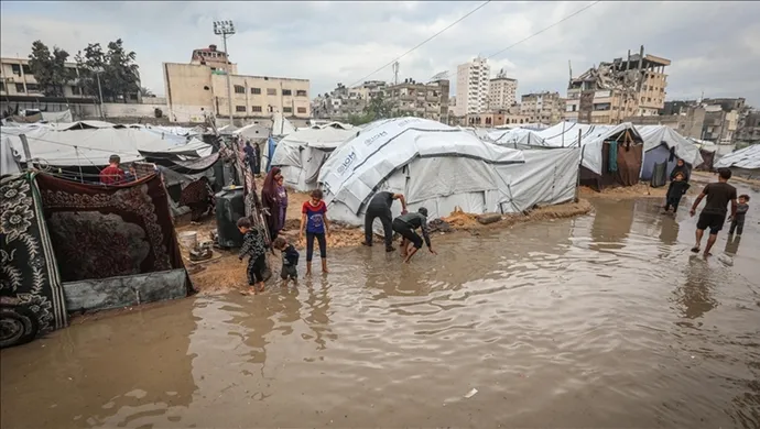 ورصدت مواقع صحفية غرق مخيمات إيواء كاملة في مدينة غزة، بفعل الأمطار الغزيرة وتهالك الخيام التي تؤوي النازحين، في ظل تعذر جهود الاستجابة السريعة، على استمرار منع قوات الاحتلال دخول المواد اللازمة للإيواء، خصوصا الخيام والمنازل الجاهزة (الكرفانات).