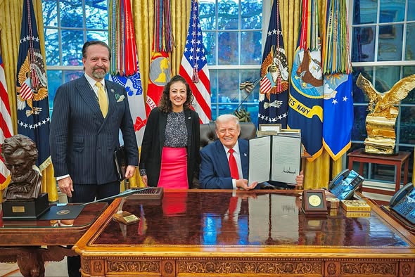 ووصف العناني "سابستيان جوركا" مستشار ترامب لمكافحة الارهاب، بالشخص النازي وأرفقتها من "الإنجيل" بقول: "ونحن نعلم أن كل الأشياء تعمل معاً للخير للذين يحبون الله، الذين هم مدعون حسب قصده"، وقالت "أشعر بتواضع وسعادة بالغة لمشاركتي في صنع التاريخ اليوم. بارك الله فيكم، أيها الرئيس ترامب والدكتور سيباستيان غوركا"، كما شاركت على إكس تغريدة لحساب رئيس الوزراء الإسرائيلي يرحب بالقرار). وذلك حسب الصحافي محمد البديوي الذي كتب تقريرا مهما عن الموضوع.