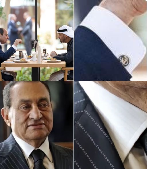 حساب حزب تكنوقراط مصر @egy technocrats علق تحت عنوان "السيسي ينقش اسمه على ملابسه" قال: "في زيارة اليوم إلى أبو ظبي، وعلى مائدة الغداء مع محمد بن زايد، كان هناك تفصيل صغير لم يلحظه أحد: مِشبك كمّ منقوش عليه اسمه، عبد الفتاح، قد يبدو مشهدًا عابرًا، وربما بلا قيمة، لكنه في الواقع إعلان صامت عن الشعور بالتمكن المطلق، عن الذات التي ظنت أن العالم صار ملكًا لها.