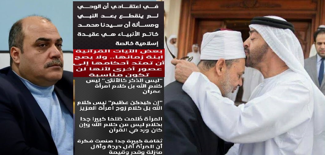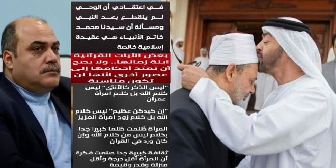 وتساءل "أيُّ جرأةٍ هذه على كتاب الله؟!. أكتابُ ربِّ العالمين يُوزَن بميزان بعض الآيات القرآنية ابنةُ زمانها؟!.. أَحْكَمُ الحاكمين يُقال في كتابه وأحكامه: لا يصح أن تمتدَّ أحكامه إلى عصور أخرى لأنه لن تكون مناسبة؟!.. #أكلام الله يُحاكَم إلى أهواء البشر؟! #أوحي الله يُوزَن بميزان الثقافة؟!".