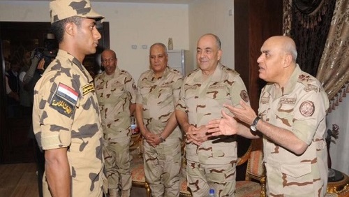 لم يقف الأمر في استقبال الممثل محمد رمضان الشهير بـ"عبده موتة" عند هذا الحد، بل إن وزير دفاع الانقلاب صبحي صدقي انتفض واستقبله شخصيا، حينما علم بأنه أصبح مجندا لدى الجيش الذي استولى عليه من أموال المصريين، وأمنه على مستقبل زملائه من المجندين الغلابة، في أن يرفع درجة وعيهم، ويكسر الخوف من قلوبهم، من أجل هدف واحد هو التنازل عن الأرض، وتدمير العرض، وهلكة الحرث والنسل.