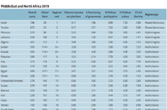 ‎أقرأ المزيد التعليقات على إيكونوميست: إسرائيل وتونس تتصدران مؤشر الديمقراطية بالمنطقة ومصر في “السبنسة”   مغلقة