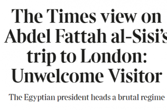 هاجمت الصحف البريطانية بعنف قائد الانقلاب عبد الفتاح السيسي، فور وصوله لندن لحضور قمة الاستثمار البريطانية – الإفريقية، ونشرت صحيفة “التايمز” العريقة، “وجهة نظر” في افتتاحيتها حول رحلة ...