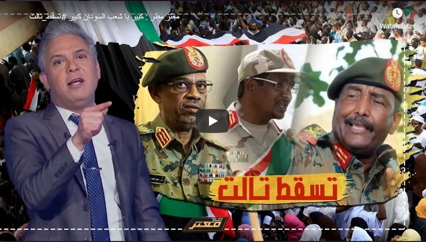 وجه الإعلامي معتز مطر رسالة نارية لشعب السودان بعد رفضهم بيان المجلس العسكري الجديد بقيادة عبدالفتاح البرهان. وقال مطر خلال برنامجه “مع معتز” على قناة “الشرق”: “كبير يا ...