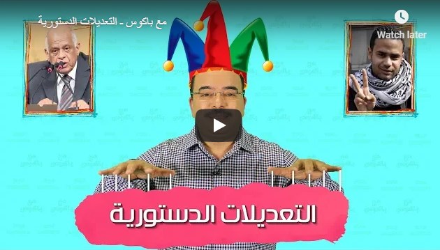بث الفنان الساخر محمد باكوس، أحدث حلقات برنامجه “مع باكوس” على موقع “يوتيوب”، تحت عنوان “التعديلات الدستورية”. وتناول باكوس، خلال الحلقة، التعديلات الدستورية الجديدة المقترحة على الدستور، والتي ...