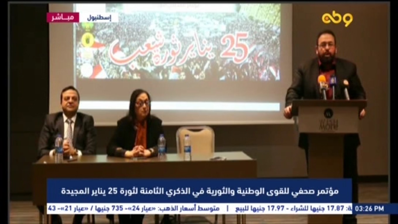 عقد المجلس الثوري المصري والقوى الوطنية مؤتمرًا صحفيًّا بمدينة إسطنبول، في الذكرى الثامنة لثورة 25 يناير. ودعت الدكتورة مها عزام، رئيس المجلس الثوري، الشعب المصري إلى استكمال ثورته ...