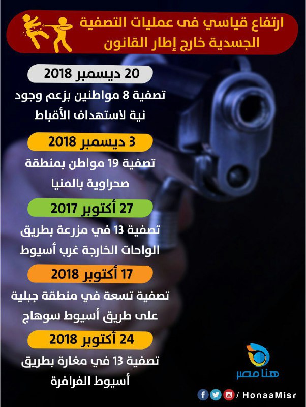 وثّقت منظمات حقوقية ارتفاع حالات القتل خارج إطار القانون خلال العام الجاري، ورصدت المنظمات مقتل أكثر من 130 شخصًا خلال شهري نوفمبر وديسمبر فقط. ففي 11 أبريل 2017، ...
