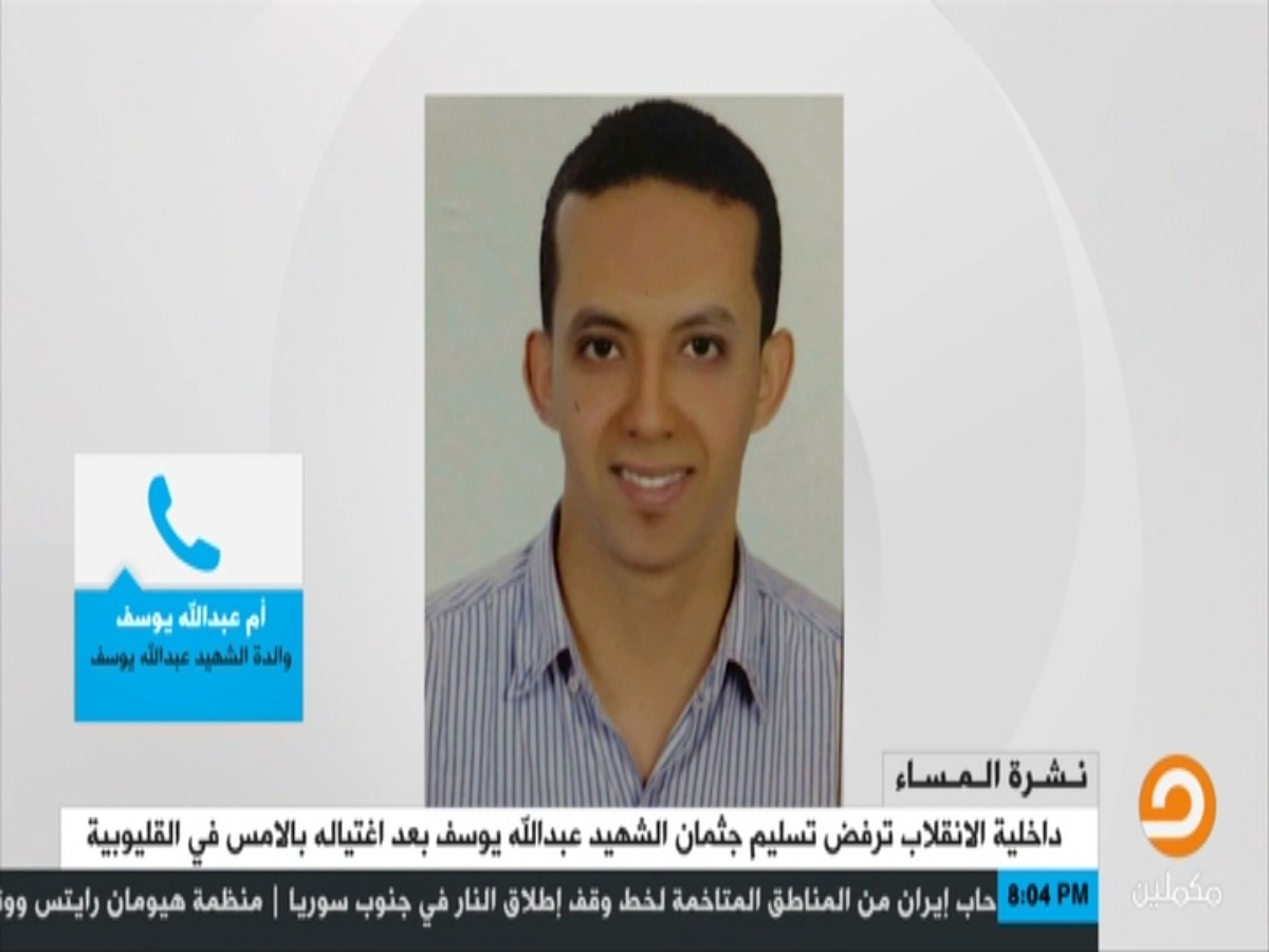 كشفت والدة الشهيد عبدالله يوسف محمد الذي أعلنت داخلية الانقلاب اغتياله أمس بمدينة العبور بمحافظة القليوبية عن وجود آثار تعذيب على جثمانه داخل المشرحة ما يؤكد اختطافه من ...