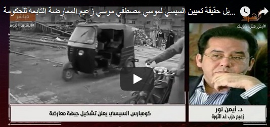كشف الدكتور أيمن نور زعيم حزب غد الثورة عن السر وراء اختيار عبدالفتاح السيسي قائد الانقلاب العسكري موسى مصطفى موسى زعيما للمعارضة التابعة لنظام الانقلاب. وأضاف نور في ...
