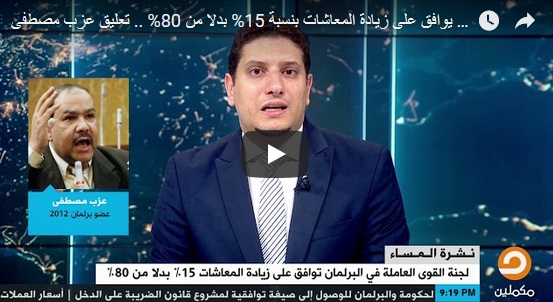 استنكر عزب مصطفى، عضو برلمان 2012، قرار برلمان الانقلاب بزيادة المعاشات بنسبة 15% بدلا من 80%، مضيفًا أن حكومة الانقلاب استولت على جزء كبير من أموال المعاشات وخسرتها ...