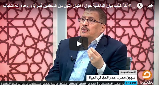 قال خلف بيومي، مدير مركز الشهاب لحقوق الإنسان: إن واقعة اغتيال داخلية الانقلاب لرأفت الرشيدي تمت بمنتهى القسوة، وتعبر عن اتجاه نظام الانقلاب في التعامل مع المعارضين، مضيفا ...