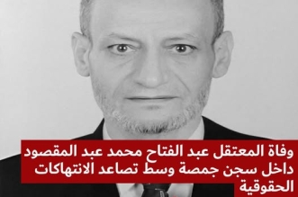 أعلنت الشبكة المصرية لحقوق الإنسان عن وفاة المعتقل عبد الفتاح محمد عبد المقصود عبيدو٬ داخل مستشفى المنصورة الجامعي بعد تدهور حالته الصحية خلال احتجازه بسجن جمصة شديد ...