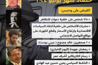 أكد المرصد العربي لحرية الإعلام (إكشف) أن عدد الصحفيين المعتقلين ، حتى يوليو 2024، وصل إلى 40 صحفيا وصحفية خلف الأسوار، بعد توقيف الصحفيين خالد ممدوح وأشرف ...