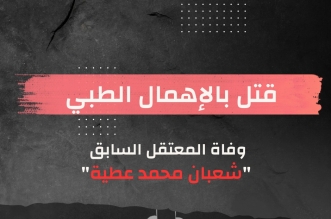 رصدت منظمات حقوقية استشهاد المعتقل السابق ” “شعبان محمد عطية الشامي” بعد إخلاء سبيله بـ 40 يومًا من قسم ثان العاشر من رمضان بعد تدهور حالته الصحية ...