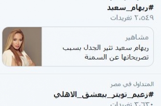 تصدر هاشتاج “#ريهام_سعيد” قائمة الهشتاجات الأكثر تداولا عبر موقع تويتر، رفضا لتطاول الإعلامية الانقلابية ريهام سعيد على ذوي السمنة من المصريين، مؤكدين ضرورة التصدي لإساءات وتطاول الأذرع الإعلامية ...