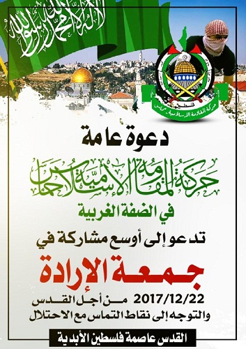 دعت حركة المقاومة الإسلامية "حماس" أبناء الشعب الفلسطيني بجميع قواه وفصائله وشباب الانتفاضة للخروج في مسيرات غاضبة عقب صلاة الظهر في "جمعة الإرادة" نصرة للقدس والأقصى. ففي بيت ...