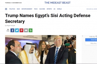 قال موقع المونيتور (al-Monitor) إن مؤيدي حكومة الانقلاب يخشون من أن "جو بايدن" سيضغط من أجل ضم جماعة الإخوان المسلمين. وتحت عنوان "أثار فوز بايدن في الانتخابات ردود ...