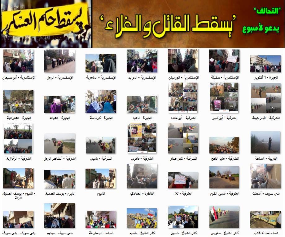 كتب أحمد علي انتفض ثوار أشمنت وميدوم ببنى سويف وبلطيم بكفر الشيخ عقب صلاة جمعة "يسقط القاتل والغلاء" التى دعا إليها التحالف الوطنى لدعم الشرعية، استمرارًا للنضال الثورى ...