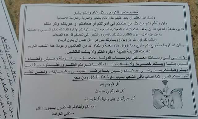 كتب أحمد علي: حملت قصاصات ورقية نشرها عدد من الشباب بكفر الدوار فى البحيرة رسالة من المعتقلين فى سجون الظلم التهنئة لشعب مصر الكريم بمناسبة عيد الأضحى، داعين ...