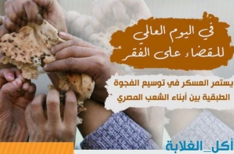 دشن ناشطون على مواقع التواصل الاجتماعي هاشتاج #أكل_الغلابة بالتزامن مع "اليوم العالمي للقضاء على الفقر" الذي يصادف 17 أكتوبر من كل عام في ظل أوضاع مُزرية يتعرض لها ...