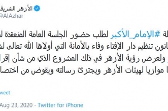 تصدر هاشتاج #ادعم_الأزهر موقع التواصل الاجتماعي للتغريدات القصيرة "تويتر" قبيل إعلان سحب قانون تنظيم دار الإفتاء قبل التصويت عليه في البرلمان، وذلك بعد معركة خاضها الأزهر وشيخه أحمد ...