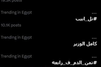 تصدر هاشتاج #تمن_الدم_ف_رابعه منصة التواصل الاجتماعي (إكس) كما لم تغب عن بقية منصات السوشيال، ولم تغب أيضا عن لجان المخابرات الالكترونية التي انضمت لها (اتحاد قبائل ...